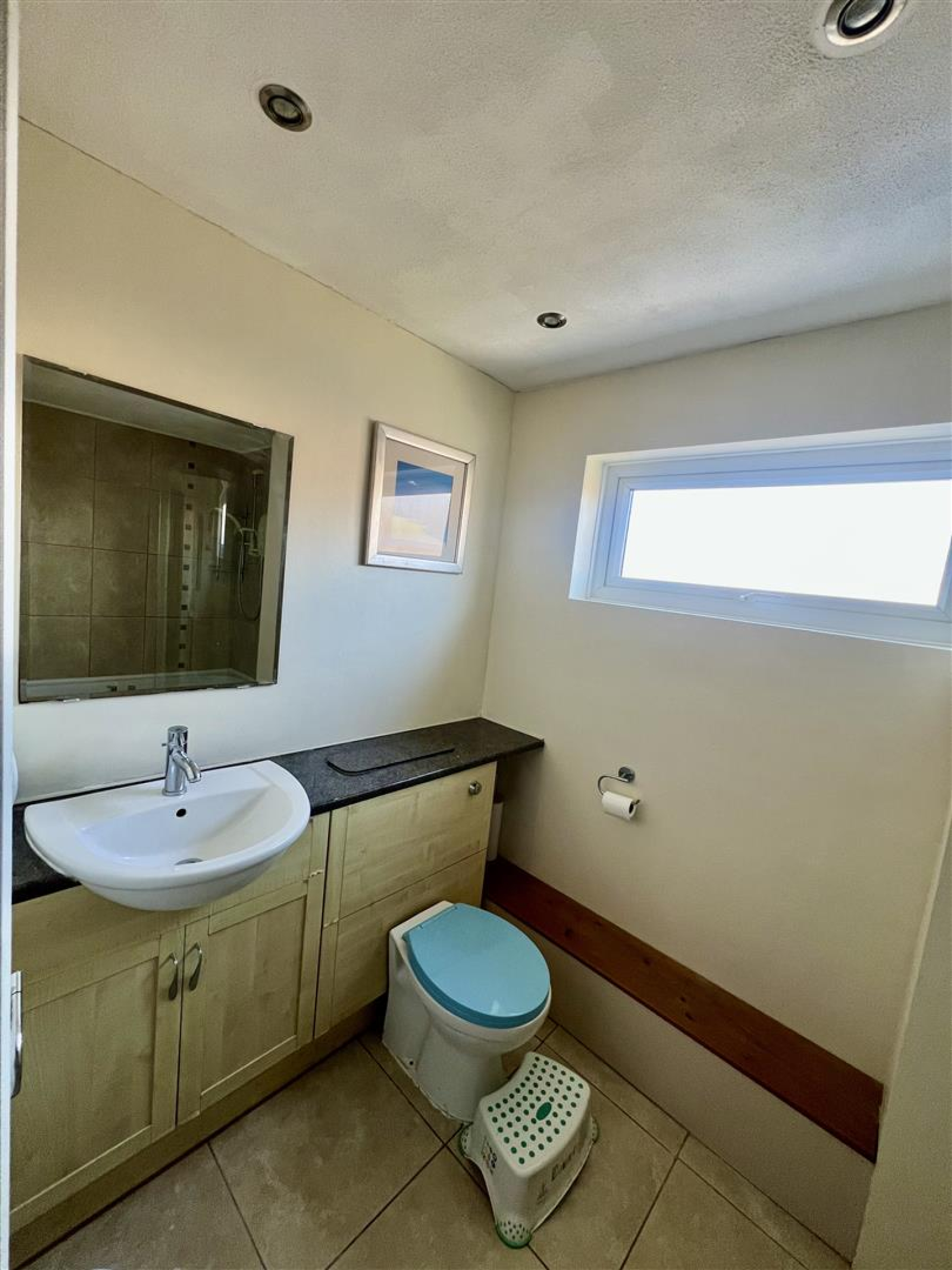 The bathroom is conveniently located and features essential amenities, ensuring practicality for everyday living.